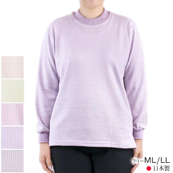 長袖トレーナー 綿混 ジャガード長袖シャツ フリーML/LL 日本製 シニア レディース 春夏 婦人服 高齢者 服 ギフト プレゼント 60代 70代 80代