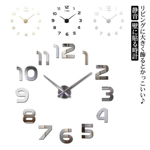 DIY ウォールクロック 壁に貼る時計 特大 時計 ウォールアート 静音 ビッグウォールクロック 鏡面 数字 ブラック クロック 壁 シール 貼れる