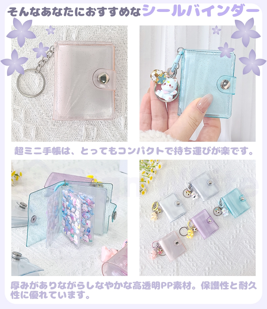 【超ミニシール帳】 ミニシール帳 シール帳 ミニアルバムキーホルダー シール帳カバー PVCカバー 透明 ぷくぷく クリア リフィル 6穴 可愛い キラキラ輝くシール