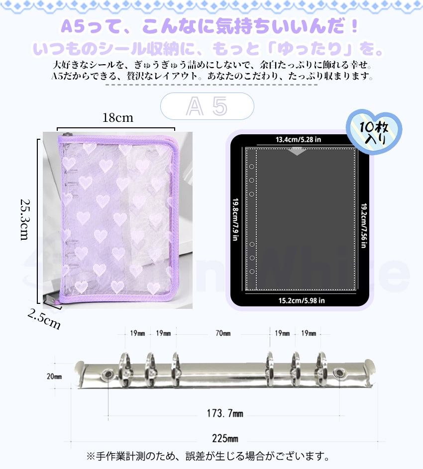 ・透明穴開きシートは片面に保護フィルムがついています。剥がしてお使い下さい。