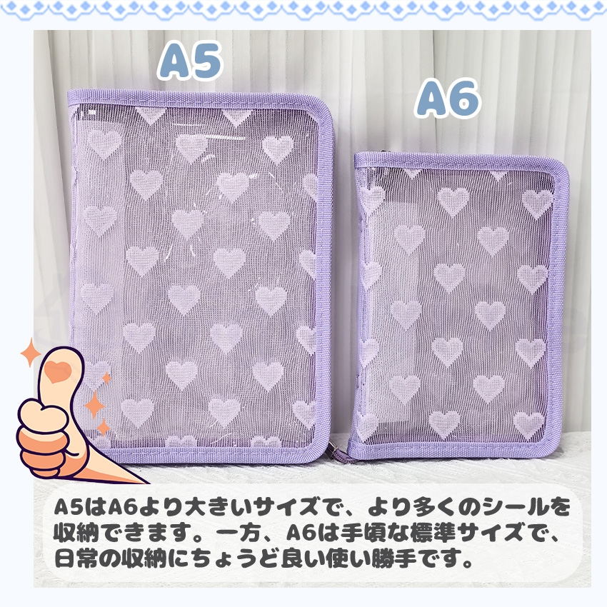 【ファスナー付きA6/A5シール帳 】 シール帳 A6 A5 ファスナー バインダー シール帳カバー PVCカバー 透明 ぷくぷく クリア 台紙 リフィル 6穴 可愛い