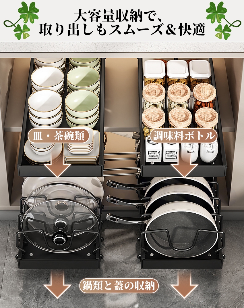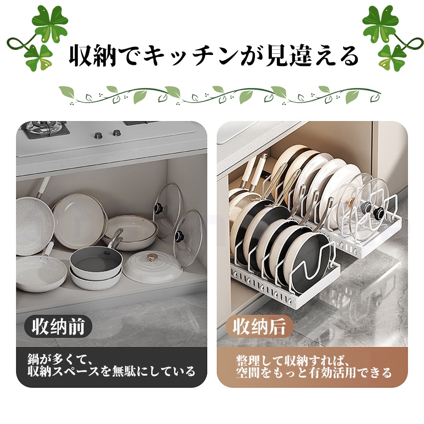 フライパンスタンド 引出し式 スライド 伸縮 コンロ下 シンク下