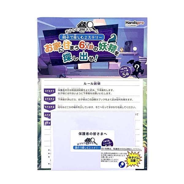 ・各級、謎解きブックA4冊子タイプ、 手がかりカード、妖精カード、隠し場所指示書がセットになっています。