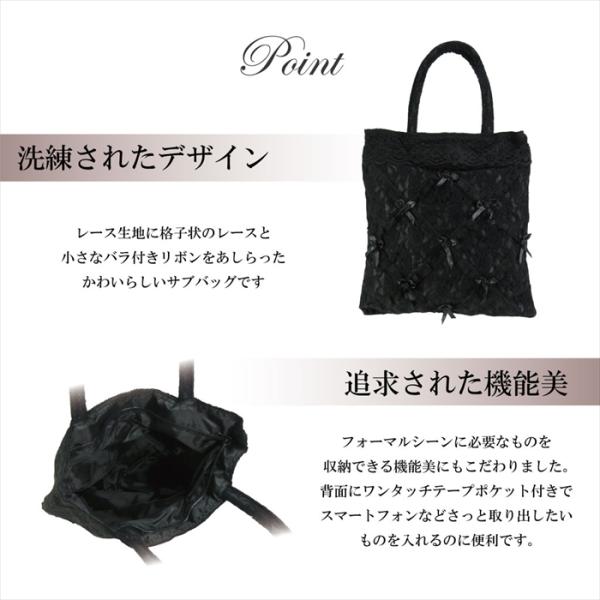ブラックフォーマル バッグ 大きめ サブバッグ 薔薇 格子 リボン 本体レース地 冠婚葬祭用 【送料無料・沖縄及び離島含む全国】(追跡可能便ご利用条件)