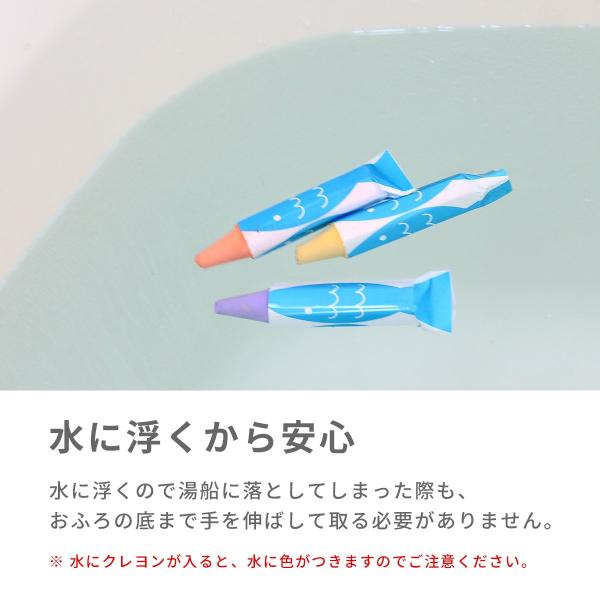 お風呂タイムをもっと楽しく!お風呂の壁などにお絵描きができるおふろ用クレヨンです。 濡れた面にも鮮明になめらかに描けるのに、水を含ませたスポンジで簡単に消すことができます。 水に浮くので湯船に落としてしまった際も、おふろの底まで手を伸ばして取る必要がありません。紙巻は濡れても破れにくい耐水紙、おさかなの柄でプカプカ浮いて楽しめます。 安心の国産ライスワックスを使用。有害物質の玩具基準に適合(ST基準第3部準拠)。 ※おふろ用キットパスは専用ボード以外にも浴室の壁や浴槽などに直接描くこともできますが、使用前には必ず目立たない場所で消えるか試した上でお楽しみください。#A006-3 #A006-4 #A006-5 #A006-6