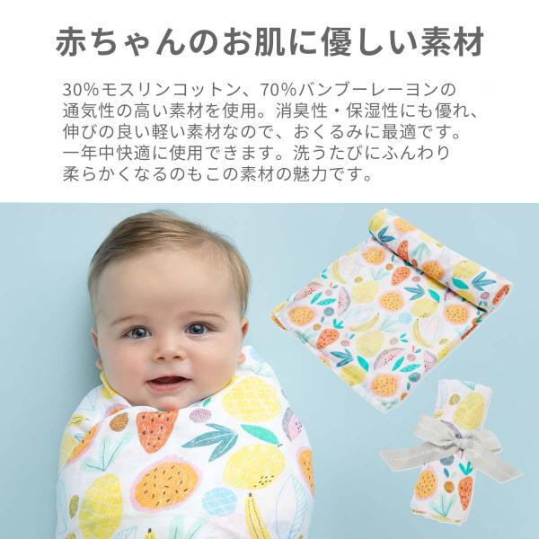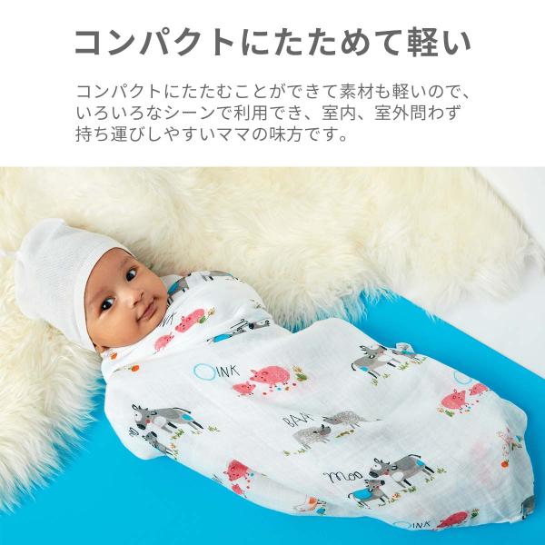 サンフランシスコ発のブランド「ANGEL DEAR(エンジェルディア)」のスワドルです。モスリンコットン製の軽くて肌触りのよい素材は、赤ちゃんのお肌に優しく、通気性・消臭性にも優れています。素材は30%モスリンコットン、70%バンブーレーヨンを使用。洗うたびにふんわり柔らかくなるのもこの素材の魅力です。縦119センチ、横119センチの大振りサイズは、工夫次第で使い方は様々!おくるみとしてはもちろん、授乳ケープ替わりや、ゲップをさせるときに肩にかけたり、自宅でシーツやブランケットとして、お出かけ先でのおむつ替えのときのシーツ、日除けや防寒具としてベビーカーのおともに、と軽くて持ち運びやすいママの味方です。#A001 #A002 #A003 #A004 #A005