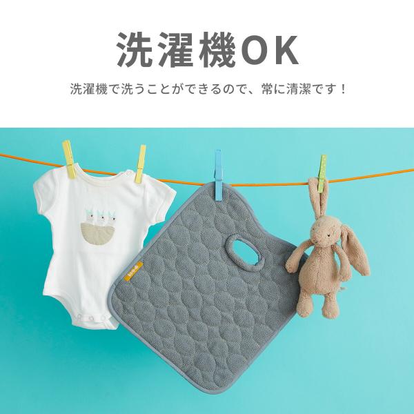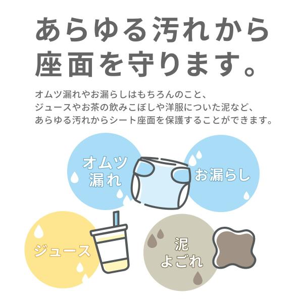 吸水性のある表面のタオル地と防水性のある裏地が、チャイルドシートやベビーカーなどを汚れから守ってくれます!