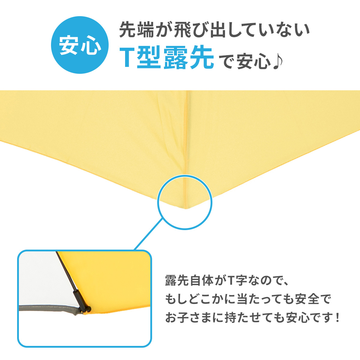 軽くて丈夫、さびにくいグラスファイバー骨の使用や太めの石突など、安全面を考慮した仕様になっています!!