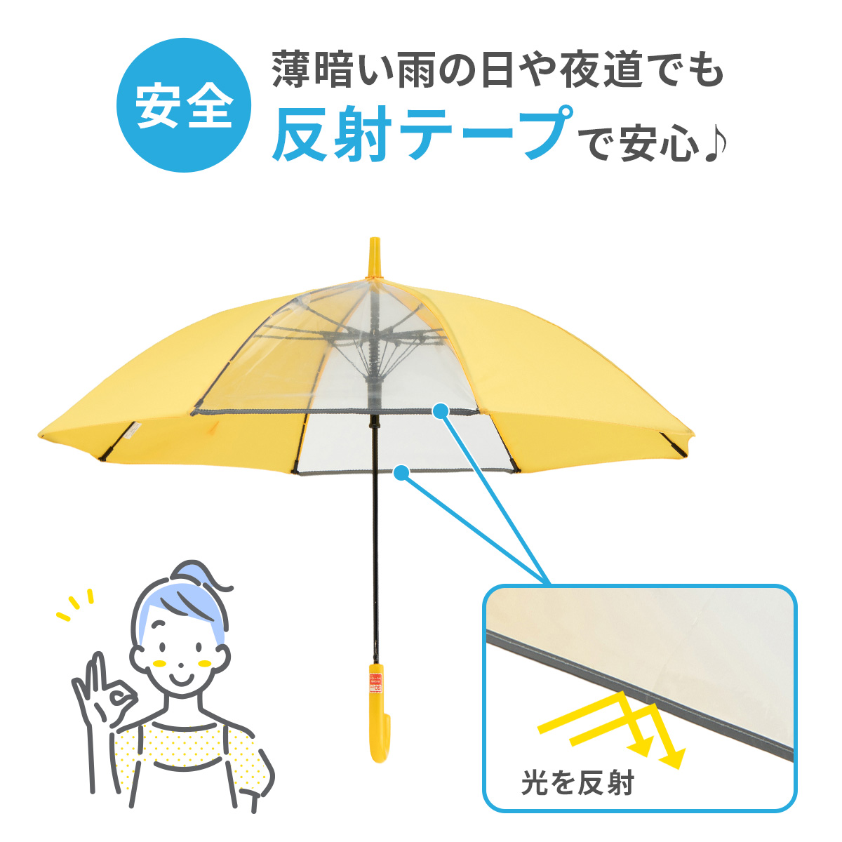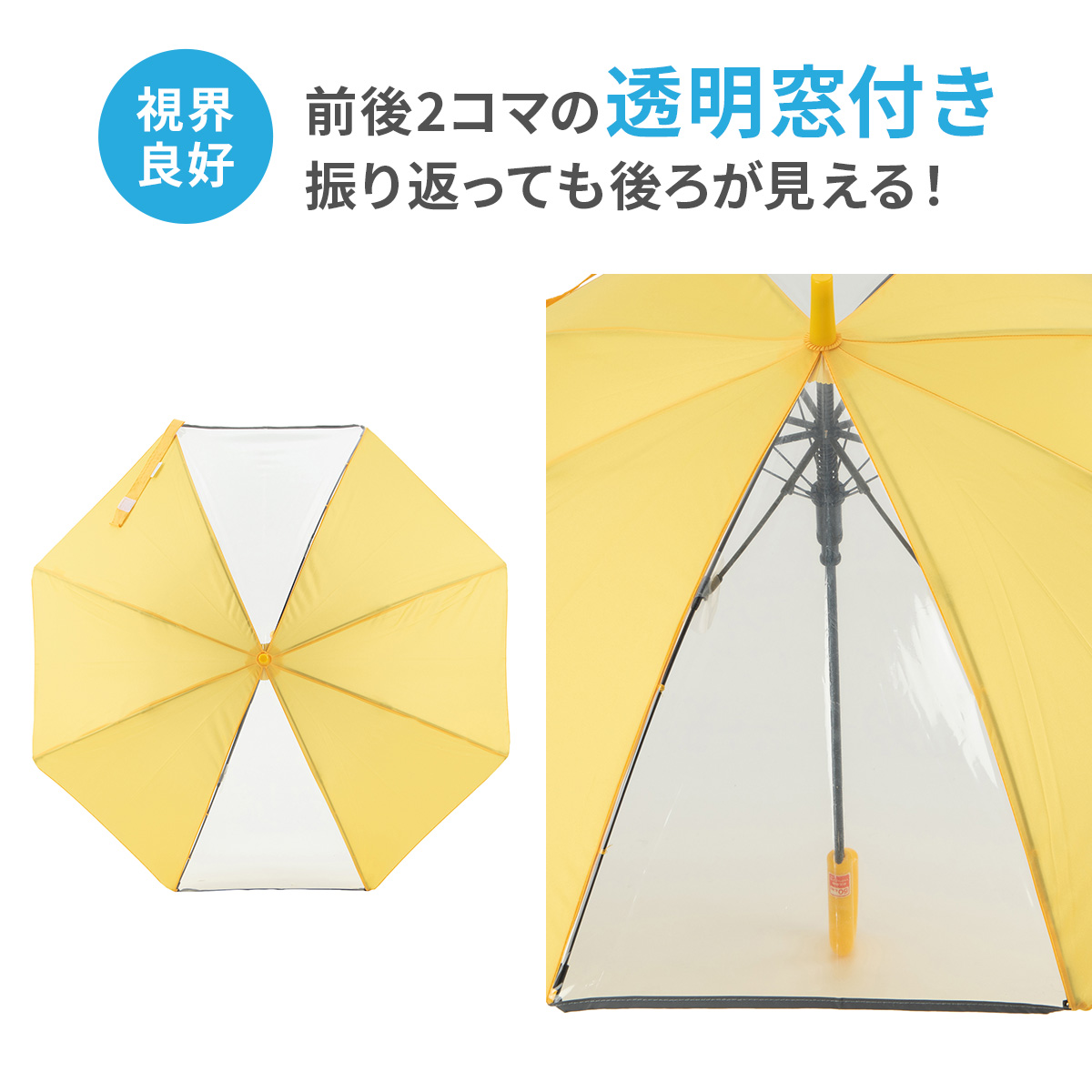 ランドセルやリュックなどが濡れないように…と深く傘をかぶっても、透明窓があるので視界も良好!!
