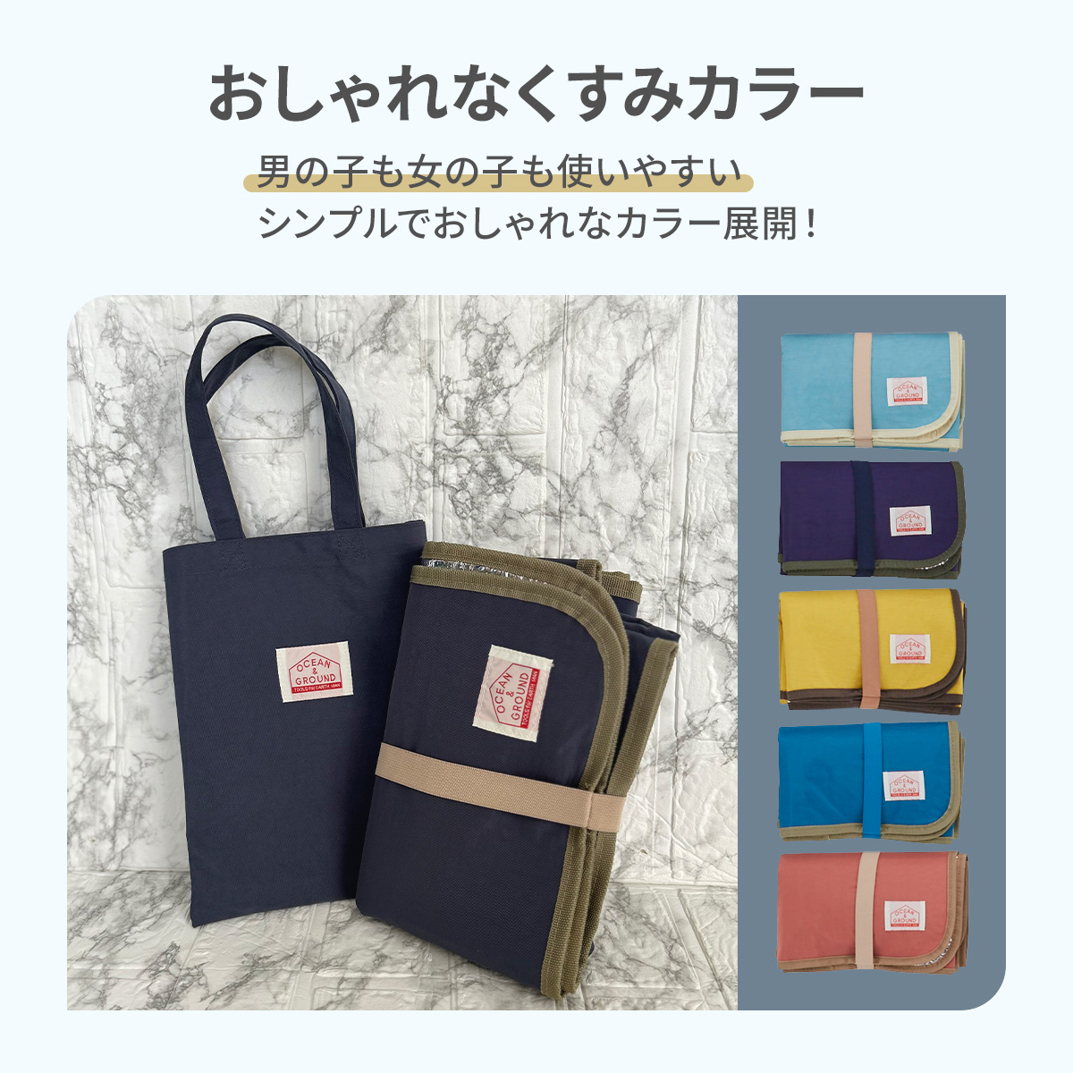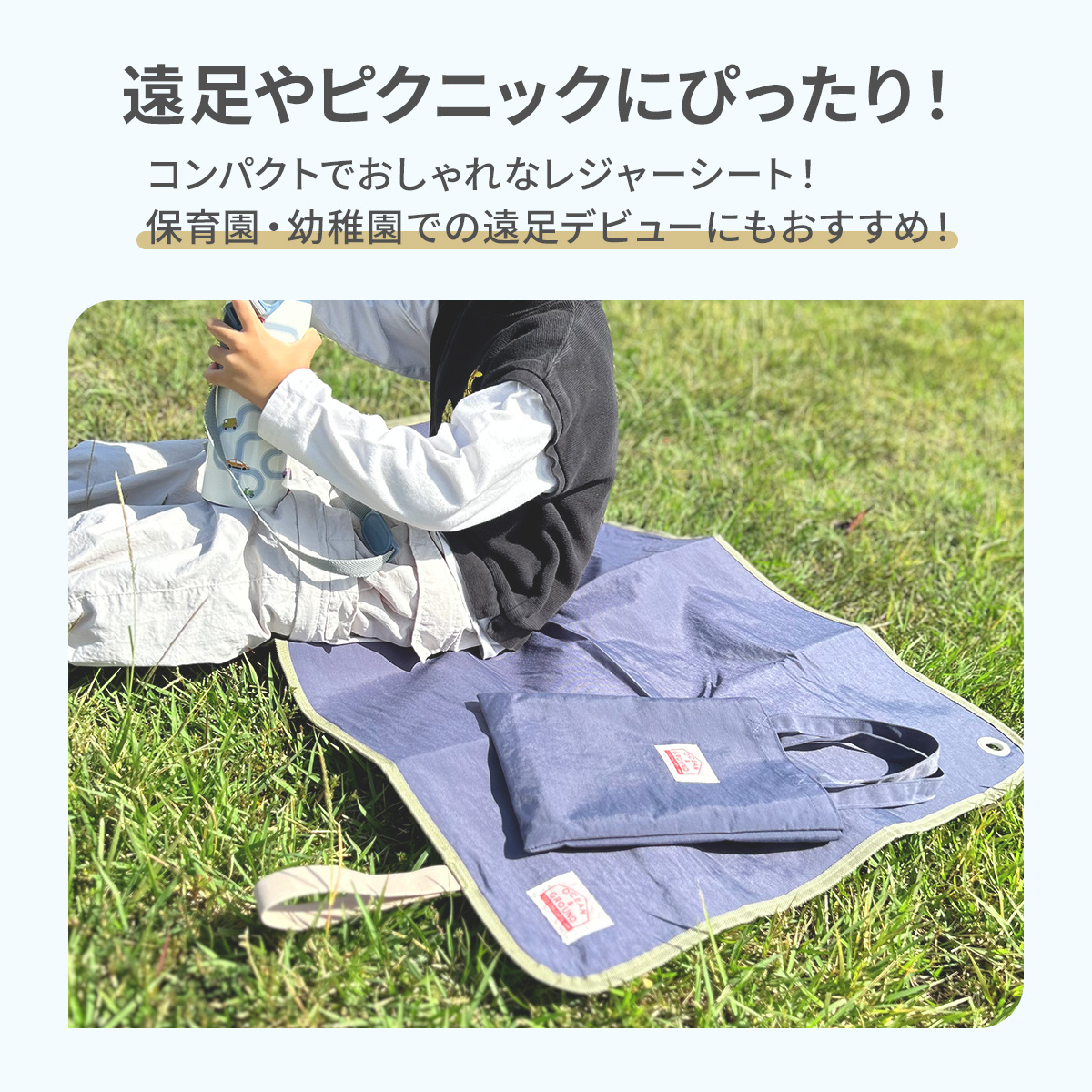 レジャーシート 子供 一人用 おしゃれ 厚手 コンパクト ミニ ピクニックシート OCEAN&GROUND キッズ 公園 遠足 行事 収納袋 小学生