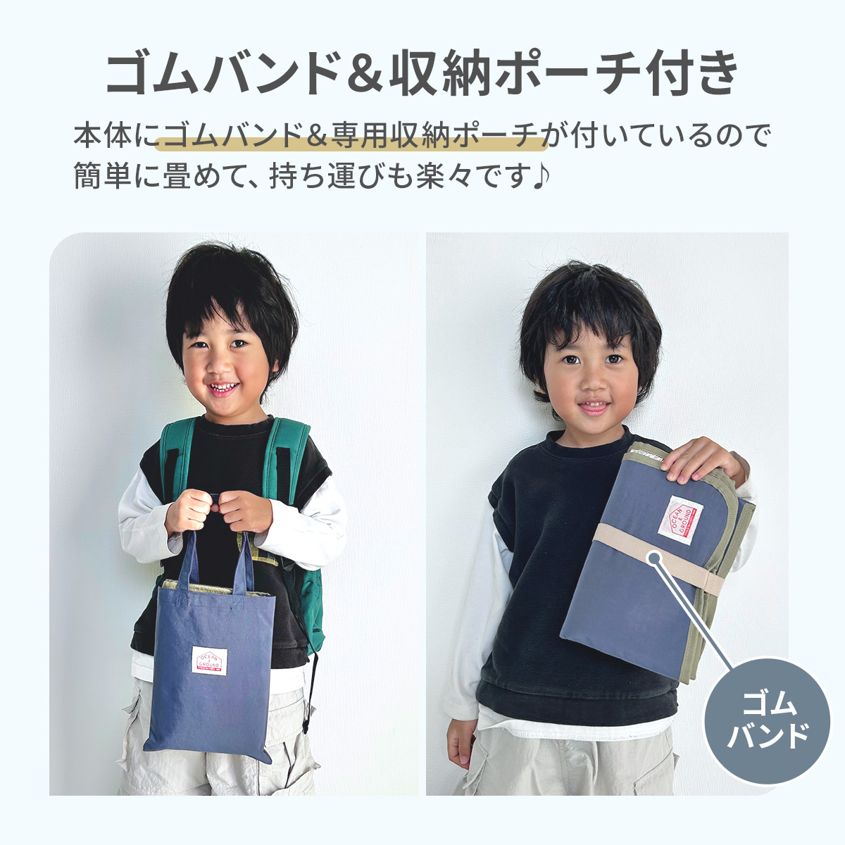 ゴムバンド付きでコンパクトになる&収納ポーチ付きで、持ち運びにも便利♪