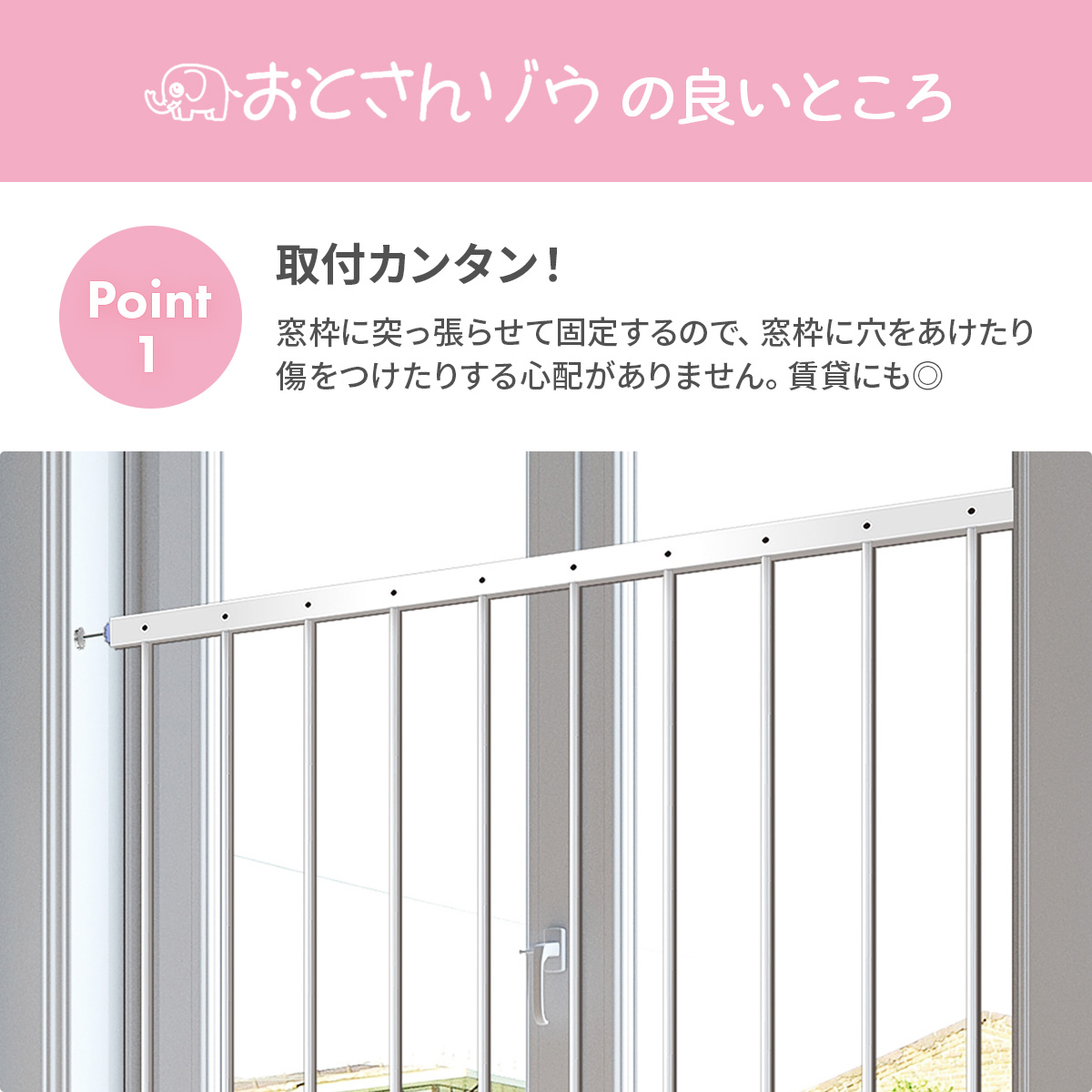 窓からの転落防止に!窓用おとさんゾウ転落防止柵「おとさんゾウ」は、窓からの転落を防ぐために設計された安全対策アイテムです。