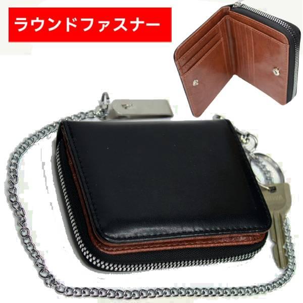 チェーン付き財布 メンズ ラウンドファスナー 二つ折りさいふ サイフ 男の子 中学生 男子 高校生 男性用