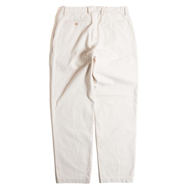 倉敷帆布製の10オンスキャンバス素材を使用した、緩やかなテーパードシルエットの2タックパンツになります。