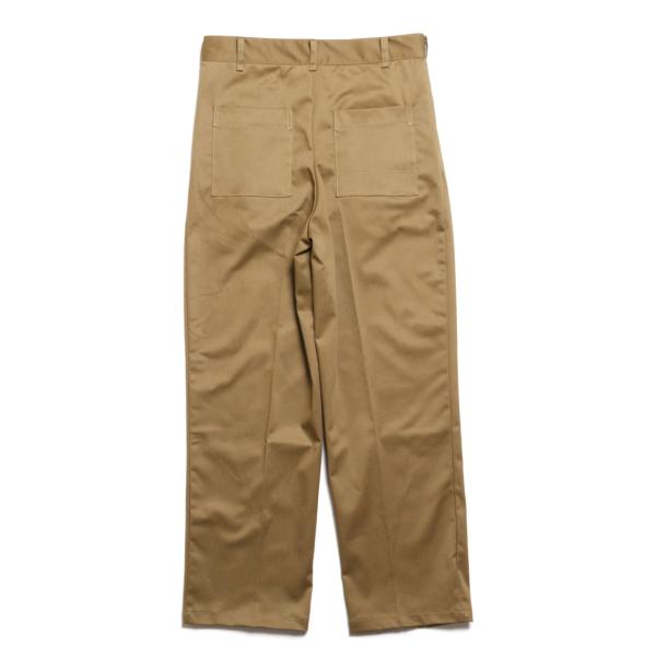 ワークウェアにみられるTCツイルの生地を選定した1タック入りのトラウザーズ仕様のパンツ。