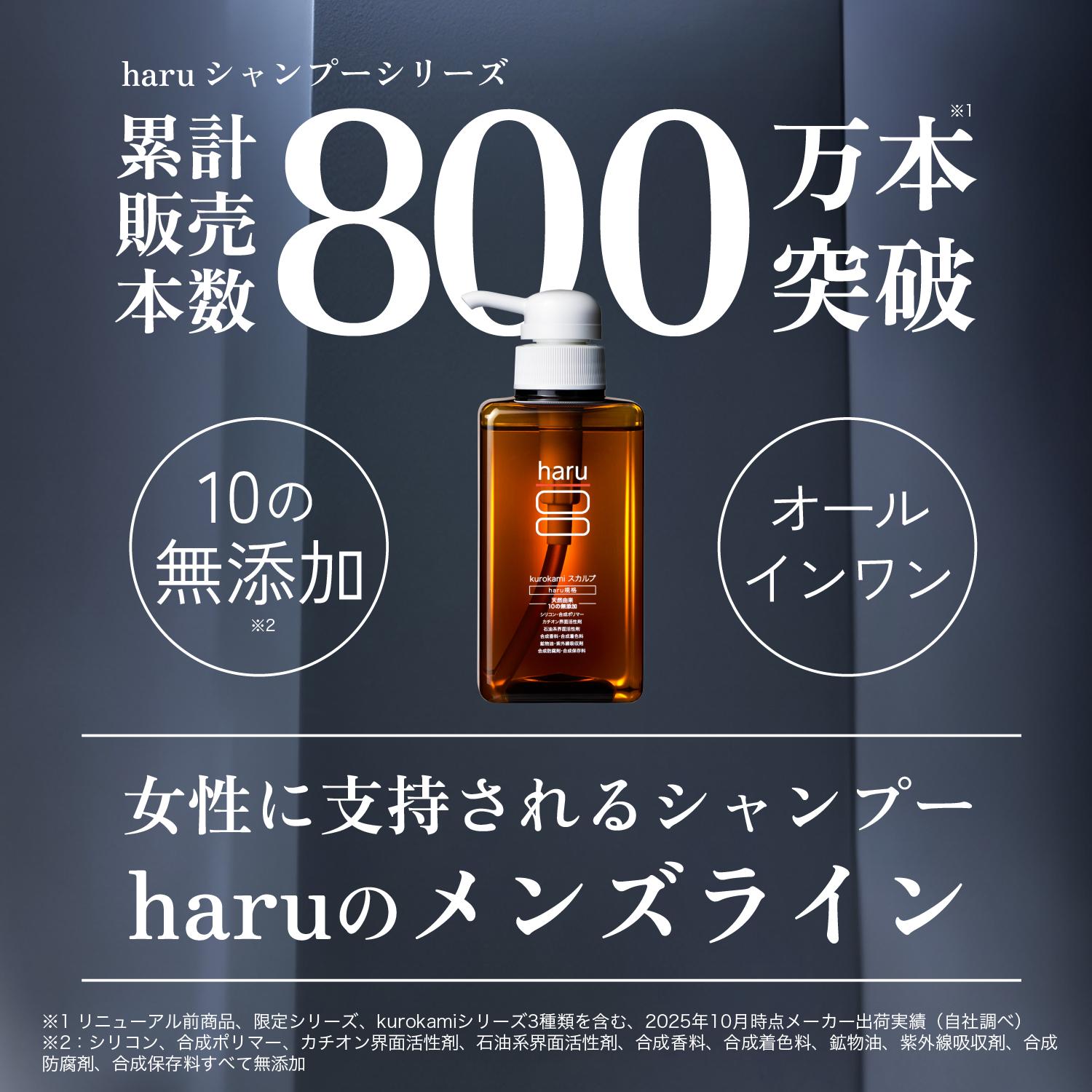 【3/23 1:59までクーポン発行中】シャンプー haru ハル 100%天然由来 kurokami スカルプ 3本 セット ノンシリコン リンス不要 オールインワン ツヤツヤ