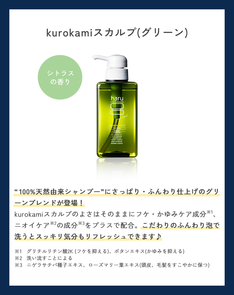シャンプー haru さわやかな使い心地の新シャンプー「kurokamiスカルプ(グリーンブレンド)3本セット」100%天然由来 リンス不要