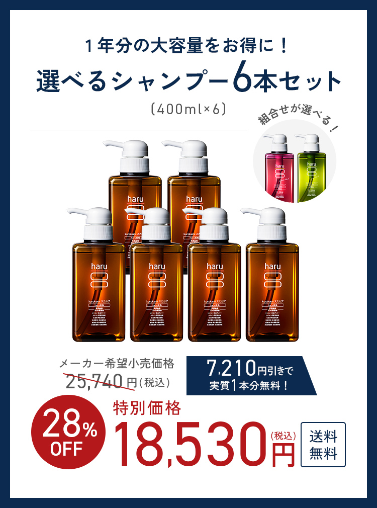 【28%OFF】シャンプー haru ハル kurokami スカルプ 6本 セット シトラス 柑橘系 ラベンダー ツヤツヤ アミノ酸 ノンシリコン 乾燥 頭皮ケア ハリ コシ