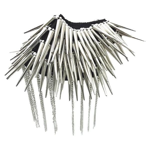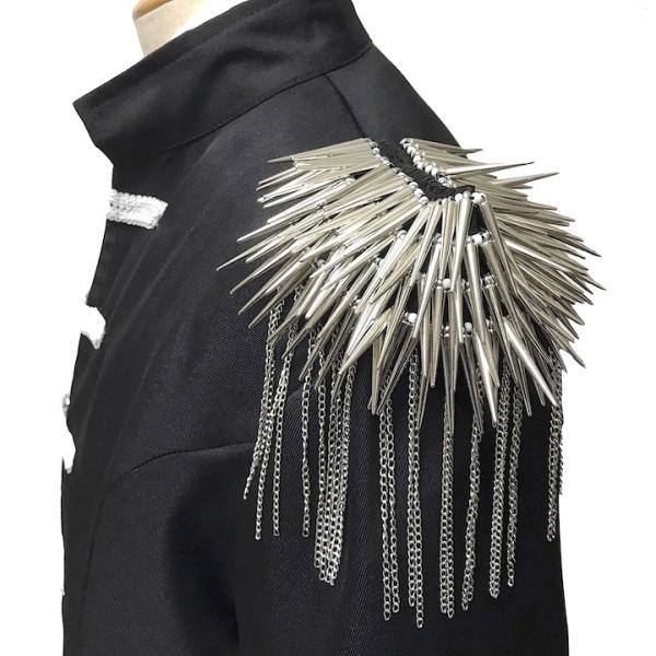 肩章 1個単品売り トゲトゲ チェーン付き スタッズ 銀 シルバー 貴族 王子様 ミリタリー 衣装 ステージ衣装