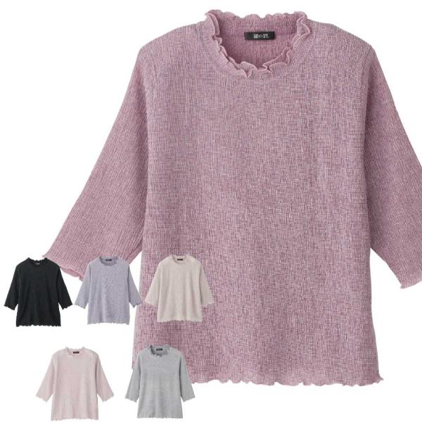 Tシャツ 7分袖 楊柳 テンセル シニアファッション 80代 70代 90代 レディース 夏 涼しい おしゃれ かわいい M ~ L S LL 3L 大きいサイズ 大きめ