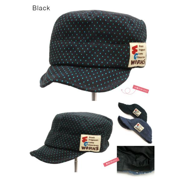 小さなドット柄生地のワークキャップ。つば先はアルミワイヤーが入っていて好きな角度に調整が可能!シンプルで合わせやすく、服装を問わず使って頂けるアイテム!W/G-のネームタグもポイントに♪手洗いOKで汗や汚れも気にせずお使い頂けます★