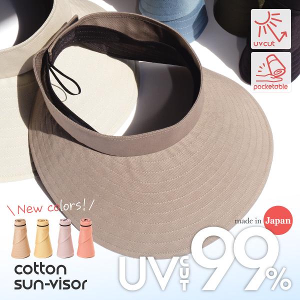 サンバイザー ポケッタブル アウレリアくるくるコットンバイザー【日本製】【UPF50+】レディース 帽子 日除け UV対策 紫外線 コンパクト Aurelia つば広