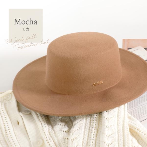 ウールフェルトつば広カンカン帽 帽子 レディース 秋冬 防寒 UV対策 ボーターハット フェルトハット 大きめ サイズ調整付 シンプル 無地