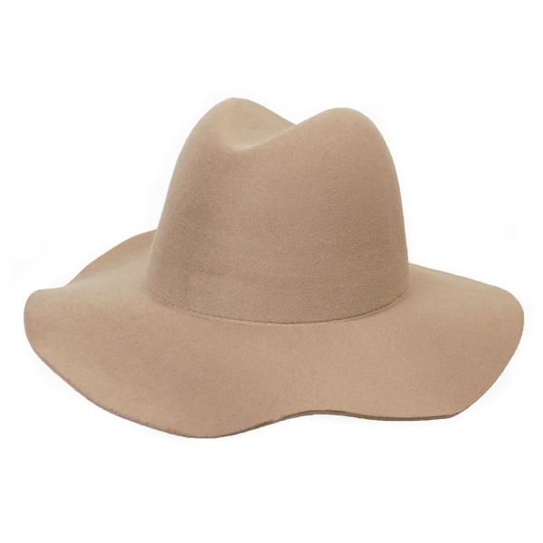 "なんちゃってウール"のポリエステル素材のフェルトハット!当店で取り扱っているフェルトハットの工場で生産しているため、ウールフェルトの素材感をしっかり再現。クラウンは飾り無しでシンプルに♪つばは切りっぱなしで、波打つデザイン。男女問わず人気の型です!