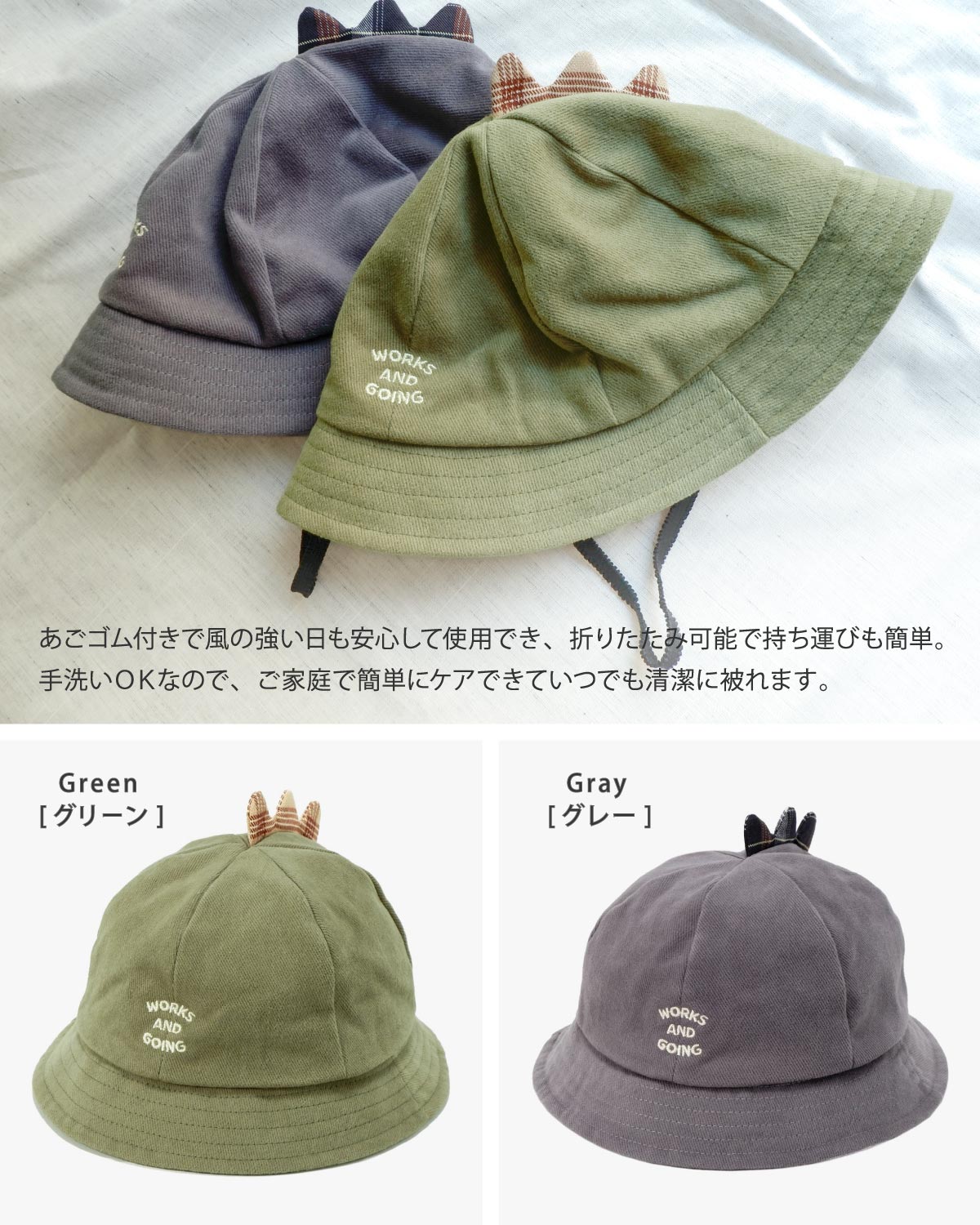 フロント部分の刺繍と怪獣風の背びれがポイントで、ユニークなデザインがキッズに人気のメトロハット。グリーンとグレーの2枚セットで、 気分やコーディネートに合わせて使い分けることができます。あごゴム付きで風の強い日も安心して使用でき、折りたたみ可能で持ち運びも簡単。手洗いOKなので、ご家庭で簡単にケアできていつでも清潔に被れます。その日の気分や服装に合わせて選べる、プレゼントにもおすすめの2点セット販売です。