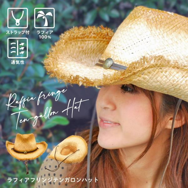 帽子 40代 50代 60代 70代 ラフィアハット 麦わら帽子 ストローハット つば広ハット テンガロンハット 大きいサイズ ウエスタン フリンジ