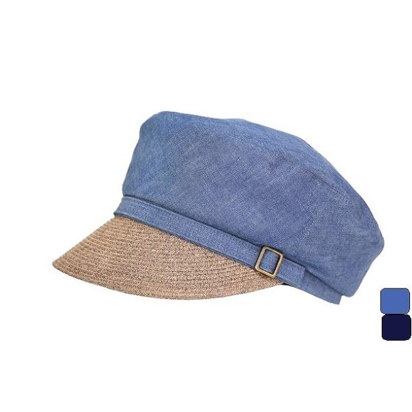 婦人帽子 ムラ糸デニム×ペーパーブレード 日本製 レディース キャスケット サイズ調節 コットン 麦わら 紺 Eliet 春夏 24901EH-ELT