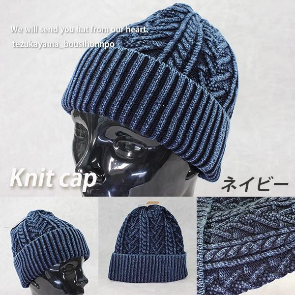 ニット帽 ニットキャップ メンズ レディース インディゴ染め デニム糸 ケーブル編み Wワッチ 無地 秋冬 トレンド 人気
