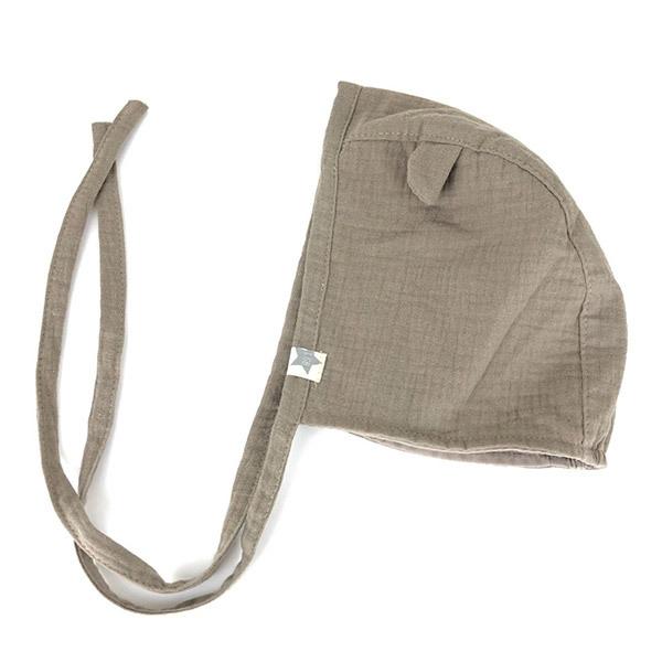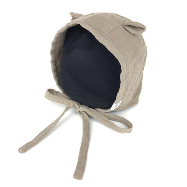 セール GRIN BUDDY くま耳 ボンネット 48cm くま耳フード フードキャップ あご紐 ガーゼ 綿 柔らか 消臭効果 帽子 ベビー NL-5692