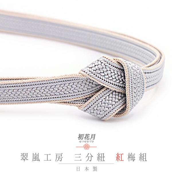 帯締め 三分紐 正絹 翠嵐工房 紅梅組 ライトグレー ライトベージュ 日本製 新品 未使用 お洒落着 カジュアル 締まる 締めやすい No.10-5857