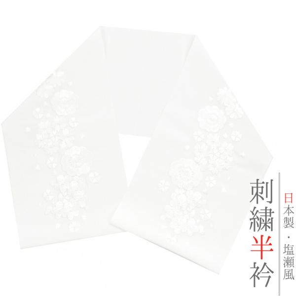 半衿 半襟 振袖 成人式 訪問着 刺繍 白地 白 礼装用 黒留袖 塩瀬 梅 桜 菊 結婚式 日本製 ポリエステル 着物 和装 半襟 可愛い No.10-6588