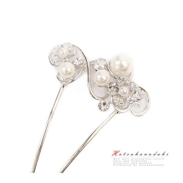 留袖 髪飾り 50代 シルバー 白 パール ラインストーン フォーマル かんざし バチ型 花 桜 キラキラ おしゃれ かわいい ヘアピン No.9-4388
