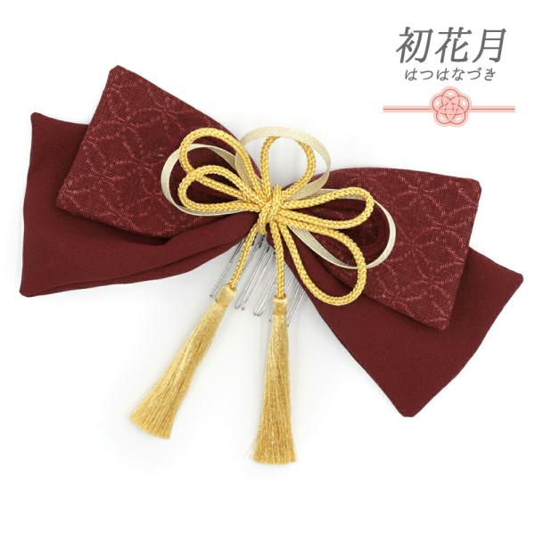 髪飾り リボン 卒業式 袴 赤 臙脂 ゴールド ちりめん 房 組紐 和柄 七宝繋ぎ 大人可愛い 日本製 お洒落 成人式 振袖 結婚式 七 No.9-5208