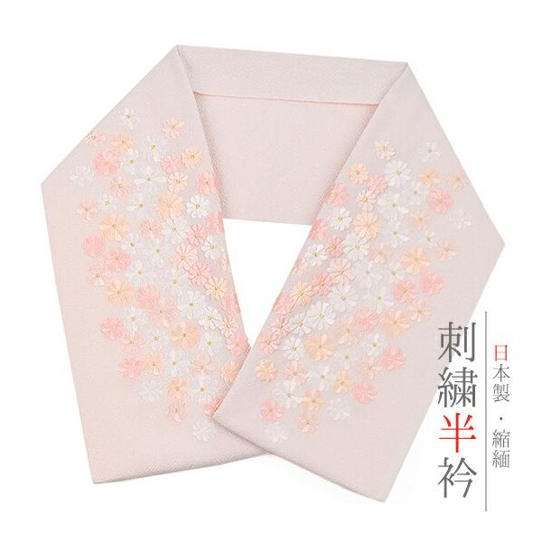 半衿 半襟 振袖 成人式 刺繍 ちりめん 薄ピンク 菊 花 お洒落着用 カジュアル 成人式 かわいい ポリエステル 和装 着物 No.10-0496