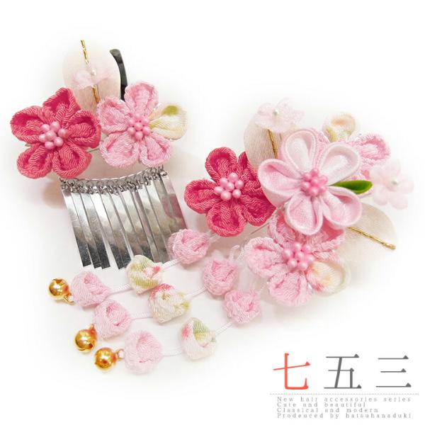 七五三 髪飾り 三歳 七歳 日本髪 つまみ細工 花 2個セット パッチン留め かんざし ちりめん ビラ お正月 和装 着物 No.9-4092
