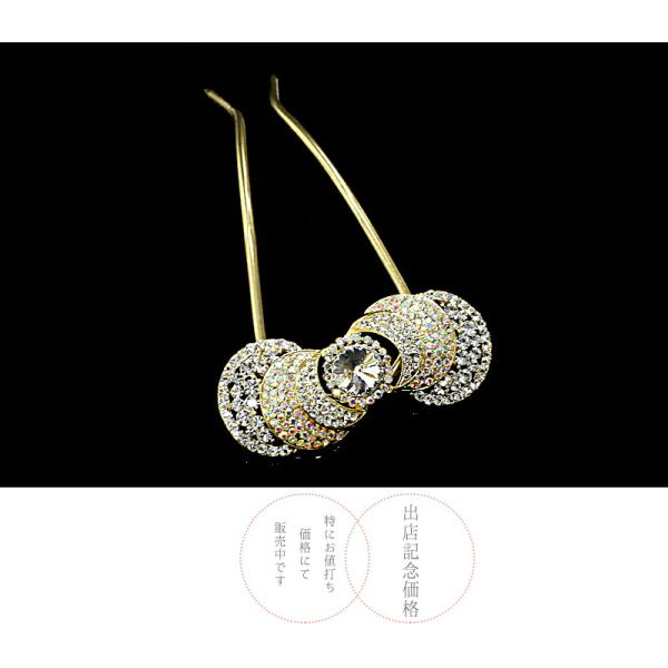 髪飾り 卒業式 入学式 結婚式 ドレス パーティー ゴールド ラインストーン オーロラ オーロララインストーン キラキラ かんざし No.10-0419