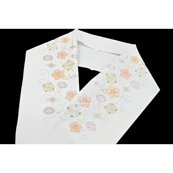 半衿 半襟 振袖 成人式 刺繍 白 青 赤 ピンク 金 縞 亀甲 菊 ポリエステル 日本製 彩小径 wamal No.wk-haneri-0041