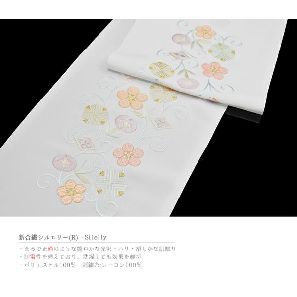 半衿 振袖 成人式 訪問着 刺繍 白地 金糸 礼装用 黒留袖 色留袖 ピンク 薄紅色 ベージュ薄紫 笹蔓 緞子 シルエリー Silel No.10-0553