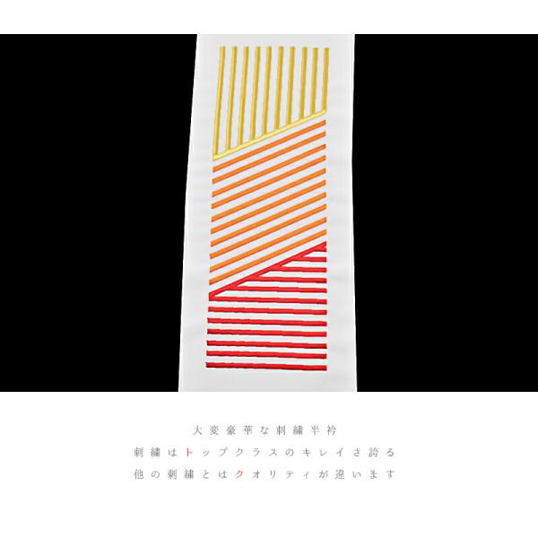 半衿 半襟 振袖 成人式 刺繍 白地 黄色 橙色 赤 斜線 ストライプ 縞 横段 シルエリー Silelly おしゃれ 半衿 刺繍半衿 No.10-0632