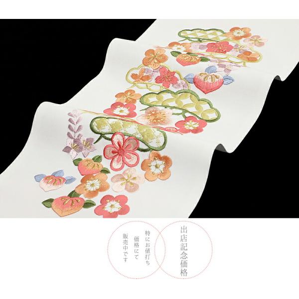 半衿 半襟 振袖 成人式 刺繍 白地 ピンク糸 オレンジ糸 松竹梅 シルエリー Silelly おしゃれ 半衿 刺繍半衿 お洒落着用 No.10-0680