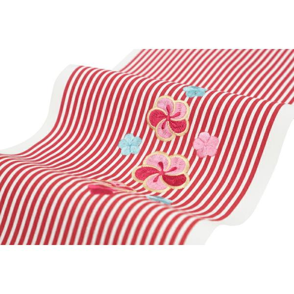 半衿 半襟 振袖 成人式 刺繍 ねじ梅 ストライプ 縦縞 立縞 白地 水色糸 赤糸 ピンク色糸 シルエリー Silelly おしゃれ No.10-0746