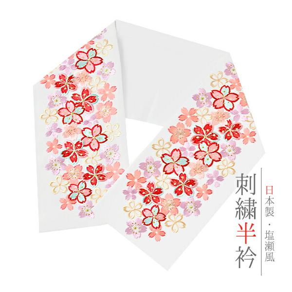 半衿 半襟 振袖 成人式 刺繍 白地 赤 水色 薄ピンク 桜 金糸 シルエリー Silelly おしゃれ 半衿 刺繍半衿 お洒落着用 成 No.10-0596