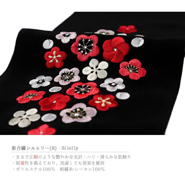 半衿 半襟 振袖 成人式 刺繍 スワロフスキー社製 クリスタル 黒地 赤 白 ピンク 金 花 梅 ラインストーン キラキラ 和柄 シルエ No.10-5014