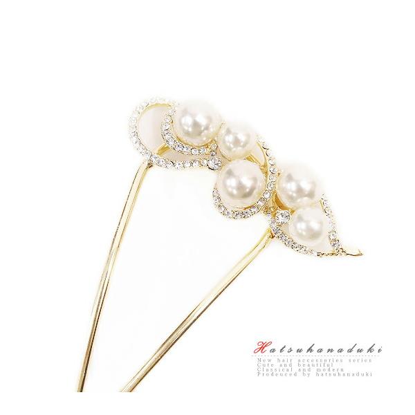 髪飾り 留袖 50代 パール ゴールド 訪問着 和装 袴 花 浴衣 祭り ラインストーン フォーマル かんざし バチ型 ウェディング No.9-4389
