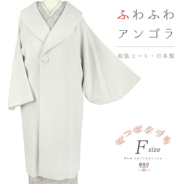 和装コート カシミヤ混 ライトグレー 長羽織 道中着 灰色 ロング丈 フリーサイズ へちま衿 くるみボタン 礼装用 訪問着 起毛仕 No.3-0223