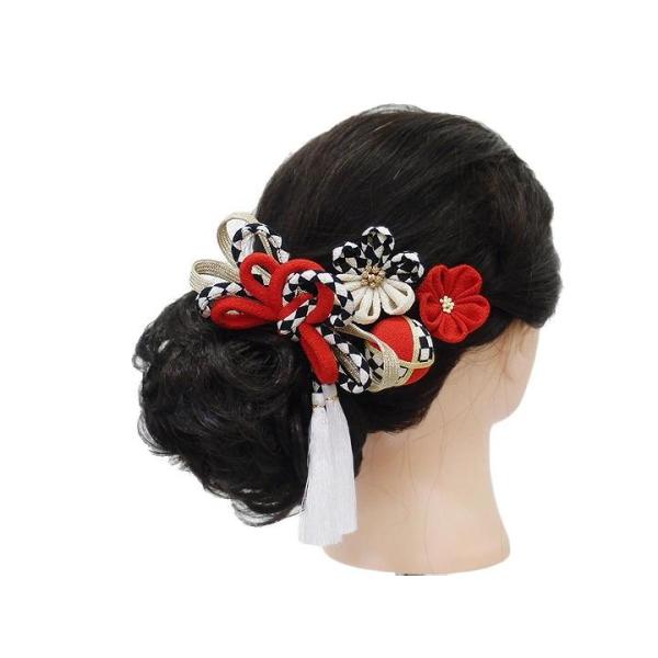髪飾り 成人式 つまみ細工 赤 黒 ゴールド 振袖 袴 花 白 ちりめん 房 組紐 和柄 大きい 小さい 4点セット 着物 和装 かんざし No.9-3833
